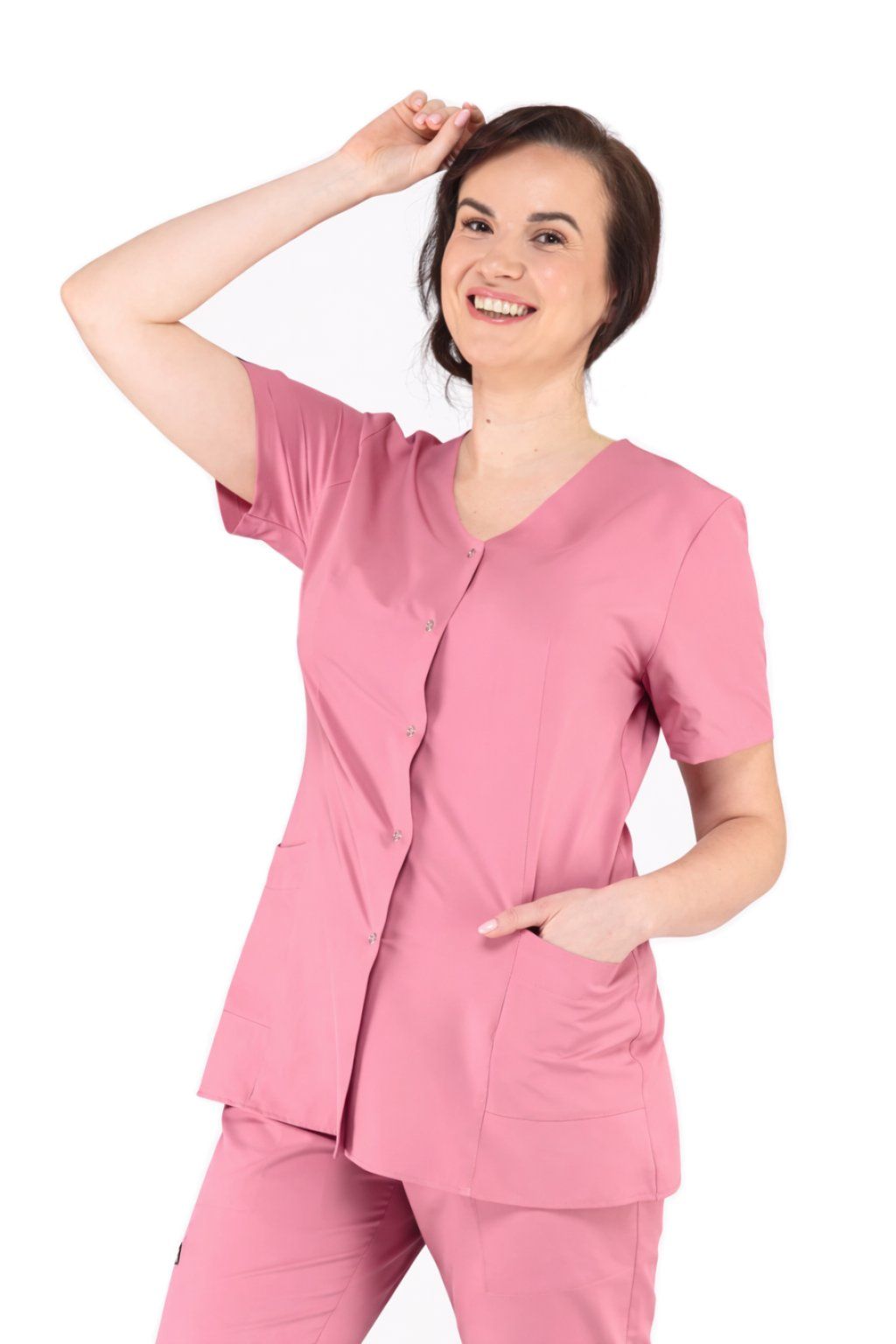 Halenka SINDY spojuje čistý design, pohodlí a praktičnost pro každodenní práci. Má klasický střih, zapínání na druky a univerzální výstřih, který působí profesionálně v každém prostředí. Diskrétní kapsy nenarušují elegantní vzhled a zároveň jsou praktické. Lehký, prodyšný a pružný materiál zajišťuje maximální komfort a volnost pohybu po celý den.