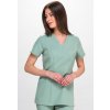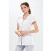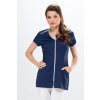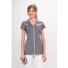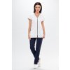 Lékařská halena projmutého střihu se zapínáním na praktický dvoucestný zip, s lehce zaobleným výstřihem do V a dvěma kapsami. Halenku opticky tvaruje prošití, barevné lemovky kapes, rukávů a barevný zip